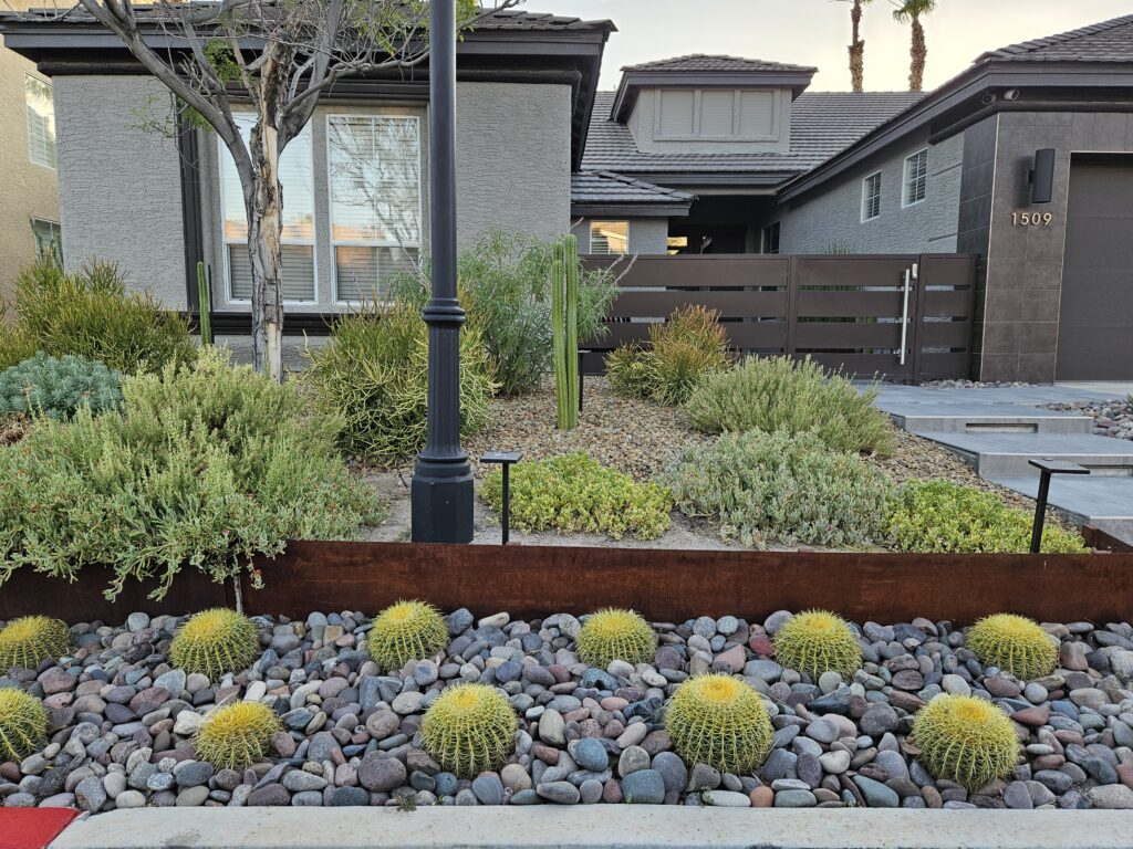 In Las Vegas, where water conservation is crucial, xeriscaping is a popular choice among homeowners and businesses seeking sustainable solutions. Our xeriscaping designs minimize water usage while maximizing beauty, using drought-tolerant plants, efficient irrigation, and creative landscaping techniques.